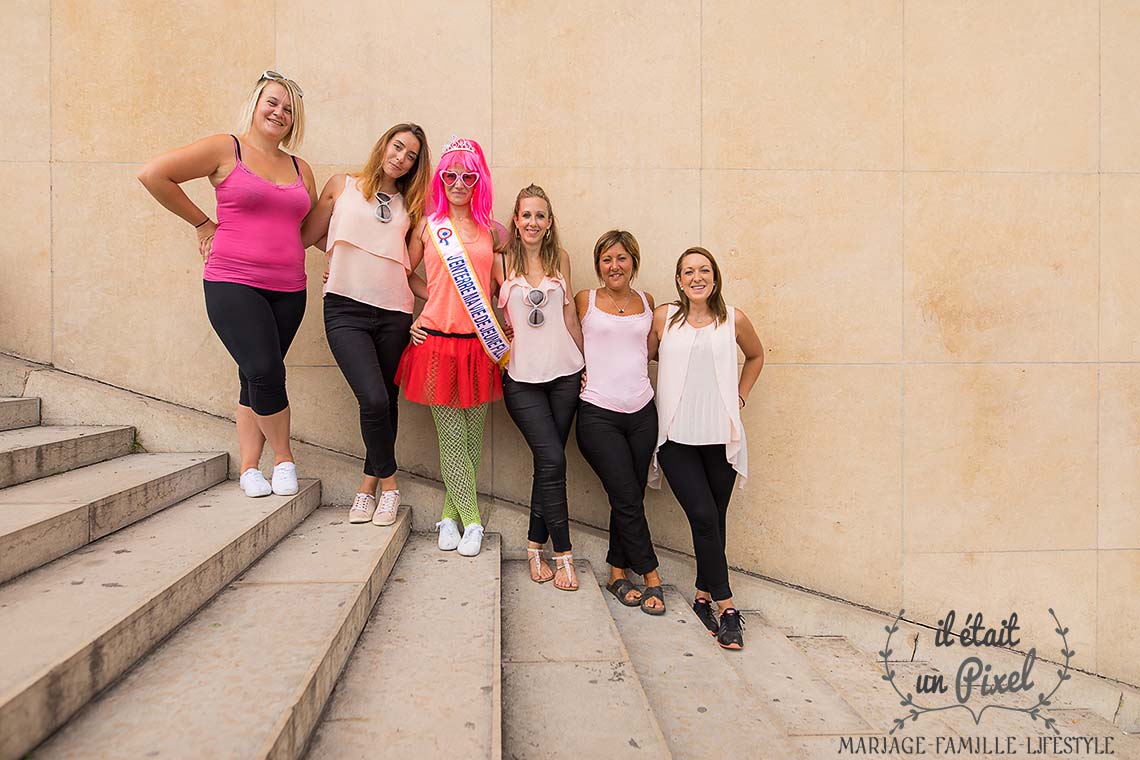 Les amies d'Anne-Sophie ont choisi la Tour Eiffel comme cadre pour sa séance photo surprise à l'occasion de son Enterrement de Vie de Jeune Fille !