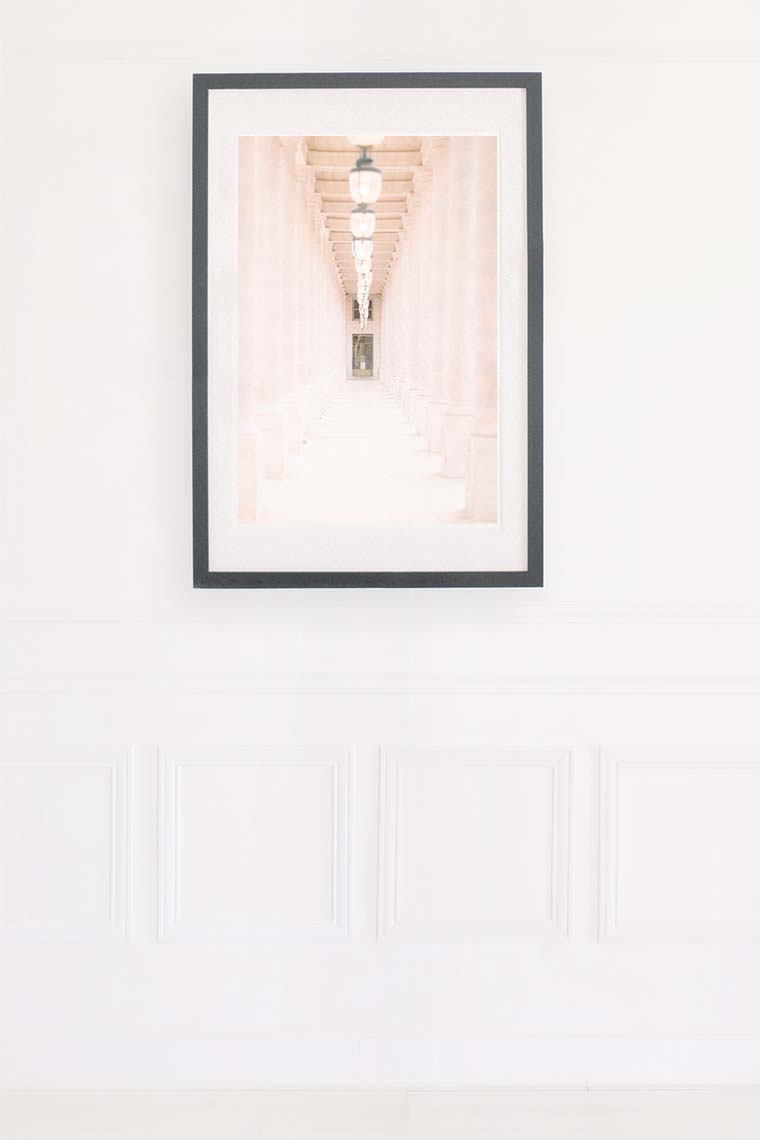 En commandant le tirage et son cadre, la Photographie sera encadrée avec passepartout sans acide de 2mm, un verre spécifique de Musée (aussi appelé Verre Mirogard) avec une transparence exceptionnelle, un traitement anti UV, protégeant la Photographie pour une conservation optimale, réduisant les reflets, sans distorsion des couleurs, et avec un beau cadre de Galerie en bois massif (disponible naturel, bois clair, ou en noir/blanc).