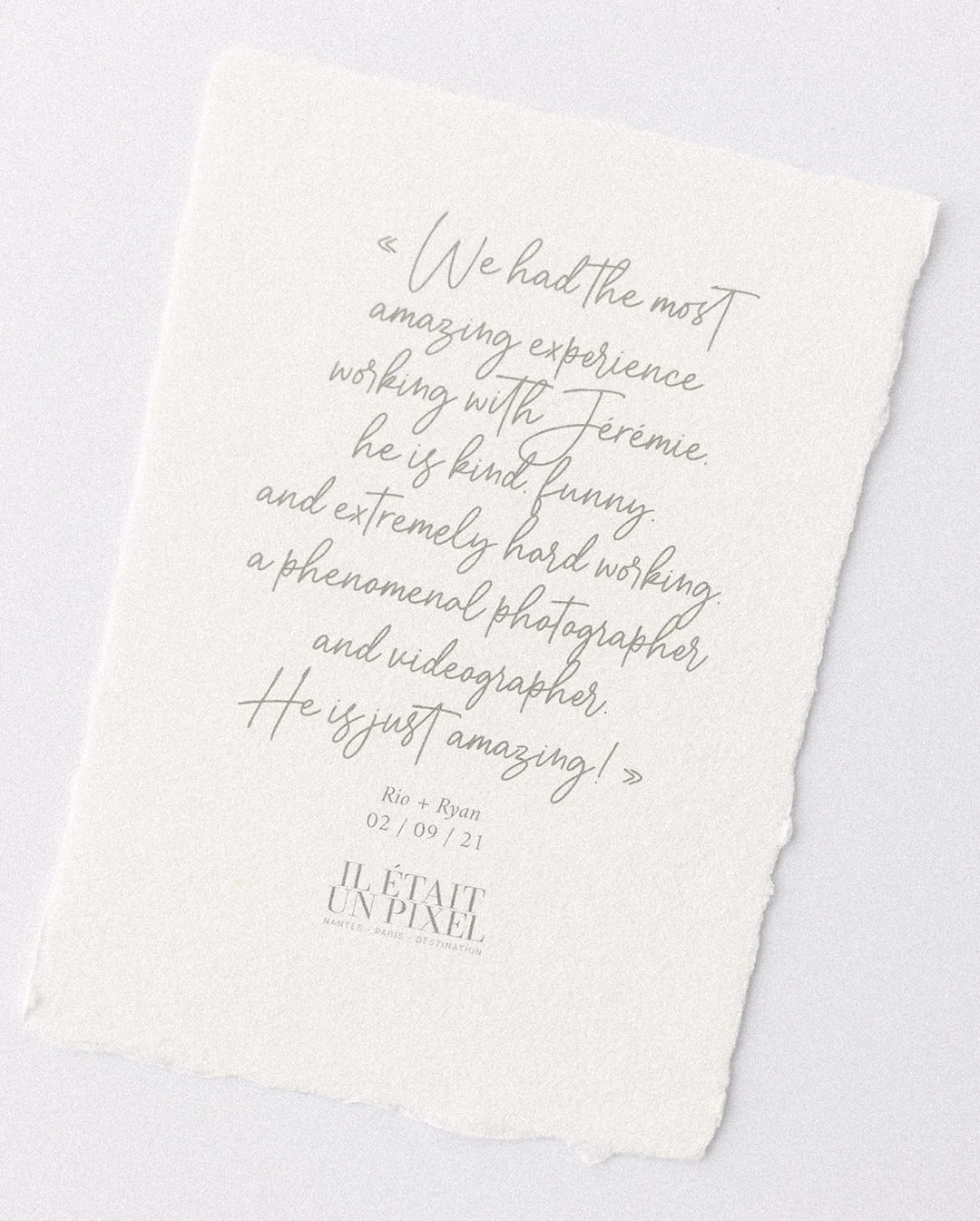 We had the most amazing experience working with Jérémie. When he was in the United States we were able to do an engagement shoot on the beach. It was raining and cold and Jérémie insisted he not wear a jacket with us so that we wouldn’t be the only ones suffering. Jérémie is kind, funny, and extremely hard working. He was there for us over the past two crazy years with Covid-19 and helped us at every turn with our destination wedding. Jérémie is a phenomenal photographer and videographer. Everyone at our wedding was blown away by his skill, professionalism, and abilities. Jérémie was able to shoot photos, switch to video, while his drone was also flying!! His skills are unmatched! Not only is he incredibly talented but also so thoughtful! He brought us sparklers for our exit which is one of our favorite parts of the wedding. He will help you to feel comfortable and direct you if you don’t know how to pose. We can not say enough good things about Jérémie. He is just AMAZing!!