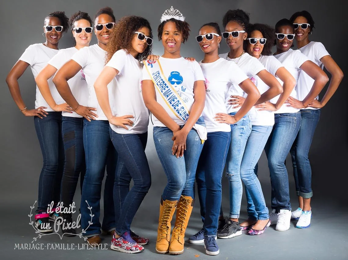Clarisse enterre sa vie de jeune fille avec 10 amies, elles font un passage au studio pour une séance photo de groupe dans une super ambiance !