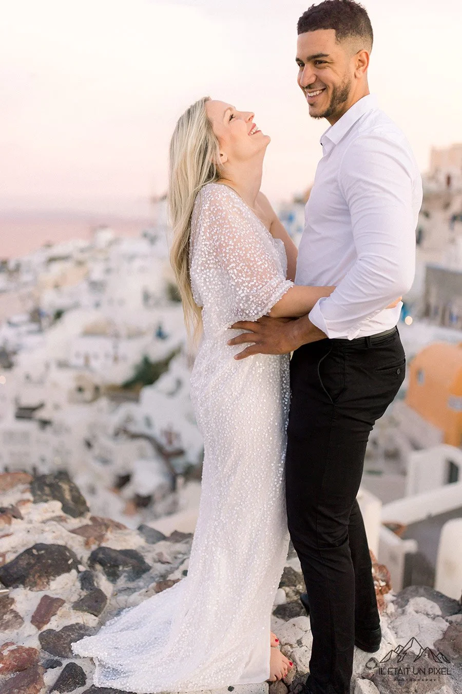 Automne (septembre à novembre) : Les températures commencent à baisser, mais les paysages de Santorin restent magnifiques. Les couleurs automnales ajoutent une touche unique aux photos de mariage, et les températures plus fraîches permettent des cérémonies en extérieur en journée plutôt qu’en soirée. De plus, les prix peuvent être plus bas à cette période, car le nombre de touristes est réduit.