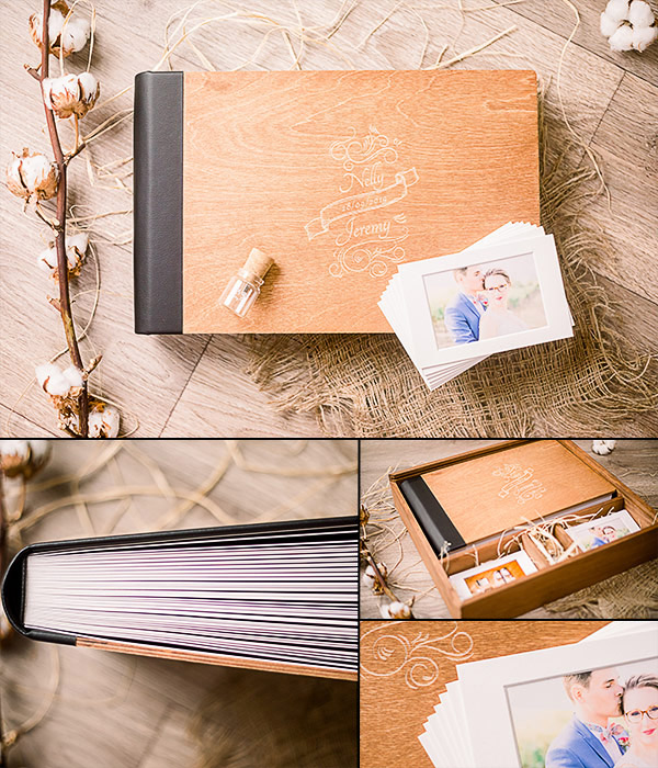 This photobook lineup is dedicated to your Wedding, Ceremony or honeymoon photos. Exceptional quality, stunning materials, impecable finish. I offer two models: one with an engraved wooden cover (with a lether back side), and the other with a full genuine Tuscany Leather cover, with an unmatched quality and durability. Both wood and leather options come in various colors. This photobook is available with Fuji Photo Paper on 800g very thick pages or even with the stellar award-winning Fine Art Hahnemuhle, premium option for the most demanding clients who value products distinguished by the highest quality.